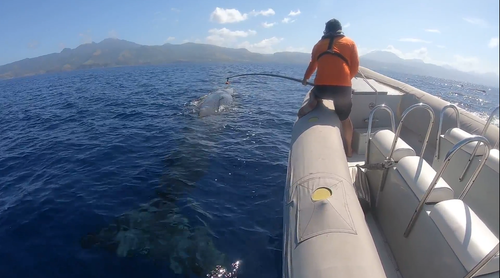SG: Oh, yeah. We would play hide-the-hydrophone because she wouldn’t go about her business. So we’d have to wait longer and let her actually start a dive before bringing the hydrophone in. Or she would run her jaw along the length of the hydrophone, sort of inspecting it because they can’t touch things with their pectoral flippers.